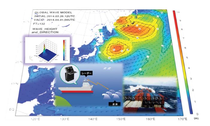 日本郵船、MTI、日本無線の3社は、2010年から共同で船舶用レーダーによる波浪スペクトル観測装置の研究開発を進めており、ここで得られた観測データを活用し、波浪モデルの精度向上に寄与することを目的に気象庁と共同研究を行うことになった。