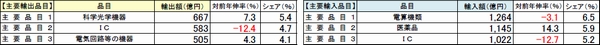 調査・データ東京税関は20日、6月の東京税関管内貿易概況(速報値)を公表した。輸出入の収支は7213億円のマイナス。輸出は2か月ぶりのプラスとなる1兆2291億円(8.1%増)、輸入は2か月ぶりのマイナスとなる1兆9503億円(0.8%減)となった。主要品目の詳細は次の通り。