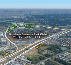 このプロジェクトの第1弾として、「グッドマンビジネスパーク千葉イースト」に着工。上り・下り専用ランプを備えた各階へのアクセスが可能な12万平方メートルの高機能物流施設を開発する。2016年3月の竣工を目指しており、既に倉庫スペースの25%で「国内の有力物流企業」と賃貸借予約契約を締結しているという。
