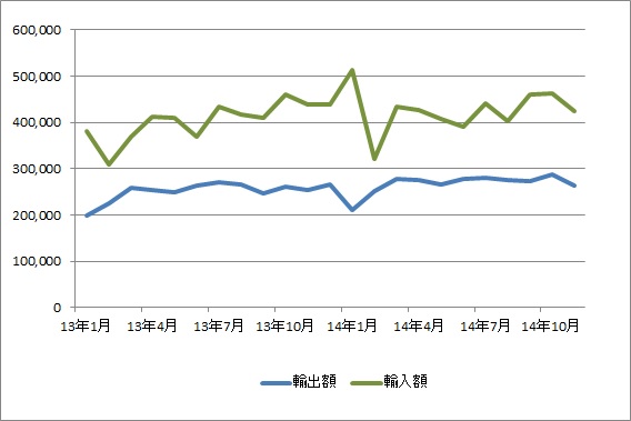 大阪港、14年12月の貿易赤字は1419億円 15/01/26