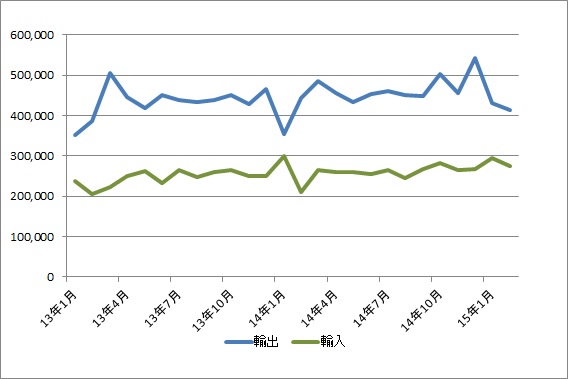 輸入額は2月としては過去最高額となる2743億円(前年同期比30.1%増)で2か月ぶりに増加し、輸入は鉱物性燃料(31.1%減)などが減少したものの、衣類・同付属品(82%増)、無機化合物(95.1%増)などが伸びに寄与した。