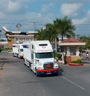 同社はカンボジアとベトナム両国を同一車両で通行できる「ダブルライセンス」の取得企業である強みを活かし、積替作業なく陸・海一貫輸送で海上輸送より早く、航空輸送より割安なサービスを実現した。