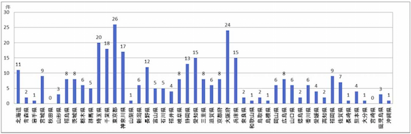 発生地別では東京都が最も多く26件、次いで大阪府24件、埼玉県20件、千葉県18件、神奈川県17件などと続いている。上位10都道府県のうち、東京都、千葉県、神奈川県、兵庫県、静岡県、長野県、北海道で死亡事故が増加した。