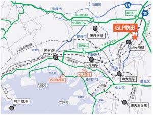 GLPの帖佐義之社長が起工式でこう話したように、開発予定地は大阪中心部から9キロ、名神高速道路吹田ICから6.3キロに位置し、名神高速道路、近畿自動車道、中国自動車道、国道171号線などを通じて大阪府全域を網羅。
