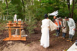 24日はブナの苗木400本を植樹し、この活動から10年の節目となる記念に、森林への感謝と成長を願う石碑「草木塔」の建立式を行った。また、25日には芋掘りや稲刈り、魚つかみ取り、伝統郷土料理調理体験を通じて地元住民との交流を深めた。