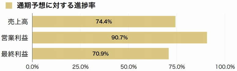 昨年1月に竣工したVLGC船とばら積船がフル稼働したことで増収。営業利益は前年度にばら積船の定期用船契期限前返船を実施したことなどで増益となった。通期予想に対する進捗は、売上高76.6%、営業利益77.4%、最終利益105.9%と堅調に推移。