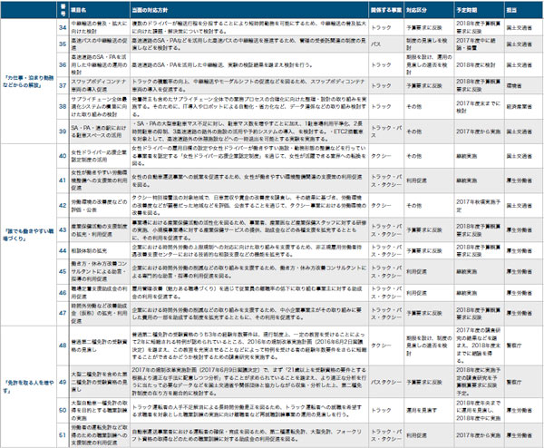 ■自動車運送事業の働き方改革における「直ちに取り組む施策」一覧(クリックで拡大)