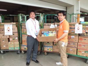 組合員から寄贈を受けた食品に、各店舗で出た陳列期限を過ぎた食品(賞味期限が2か月以上残っているもの)を合わせ、9月6日に計635キロをフードバンクふじのくにに寄付した。