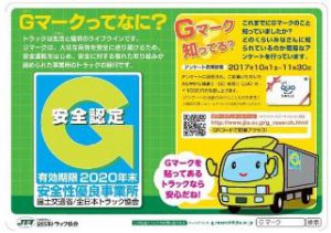 全日本トラック協会(全ト協)は、10・11月の2か月間、東名高速道路海老名SA(上り)で、Gマークの認知度を調べるアンケートを実施している。