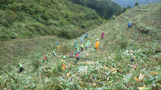 山形県飯豊町「日通の森」で森林育成活動、40人参加 17/10/02