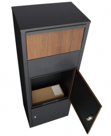 個人宅専用の宅配ボックスは、宅配の再配達が社会問題化していることを受けて販売するもので、木目調で玄関の雰囲気を損なわないデザインを採り入れた。一度投入された荷物は鍵を開けない限り再び取り出せないため、防犯性に優れ、受領印はボックス内に保管できる。