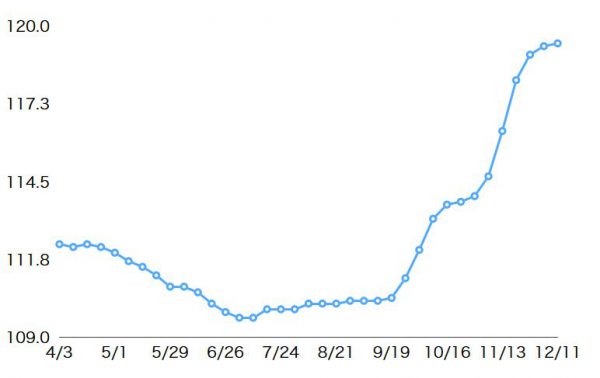 | 地域 | 12月11日(単位:円) | 12月4日(単位:円) | 上昇率 |