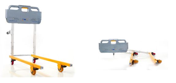 片面プラスチックパレットと200キロまでの軽量積載物を対象に韓国のプロテクター&フォールディングトラック(P&F)社が開発したもの。製品の重量は20キロで、ハンドルを握って右側に倒すだけで、パレット差込口へ挿入できるのが特徴。価格はオープン。