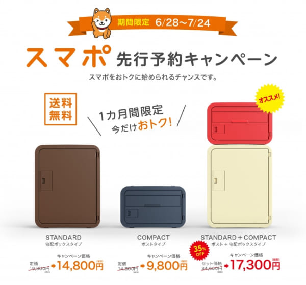 設置はワイヤーで容易に取り付けが可能で、防滴仕様により屋外設置にも対応する。ポストは厚さ4センチの大型メール便の受け取りが可能となっている。さらに、スマポ全種類対応の「あんしんサポート」で、破損や紛失などの被害を補償する。