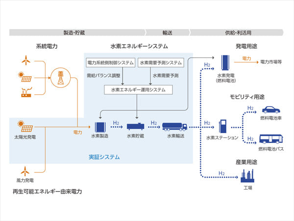 2019年10月までにシステムの建設を完了させ、試運転を開始し、20年7月までに技術課題の確認・検証を行う実証運用と水素の輸送を開始する。システムで製造された水素は、燃料電池による発電用途、燃料電池車・燃料電池バスなどのモビリティ用途、工場における燃料などに使用される。