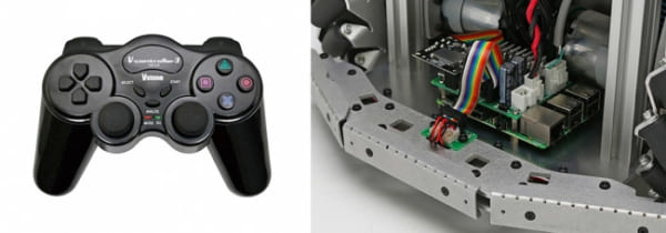 ▲(写真左)無線コントローラ(右)「ラズベリーパイ3B」搭載(オプション)