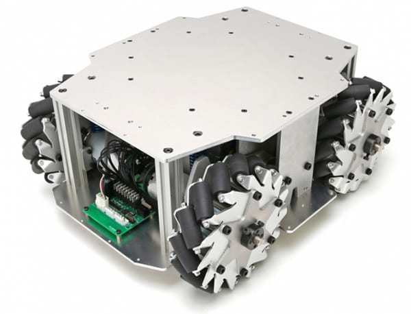 同製品は、すでに発売している「メカナムローバーVer1.2」の後継機種となる4輪駆動の研究開発用台車ロボット。アルミフレームの高剛性なロボットとなっており、可搬重量は40キロ、最高速度は秒速1.3メートルを実現している。