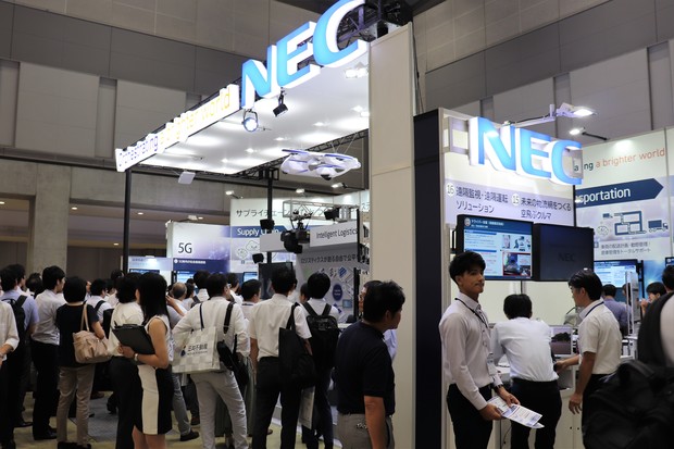 ▲NECブースは関心を寄せる多くの人で賑わった