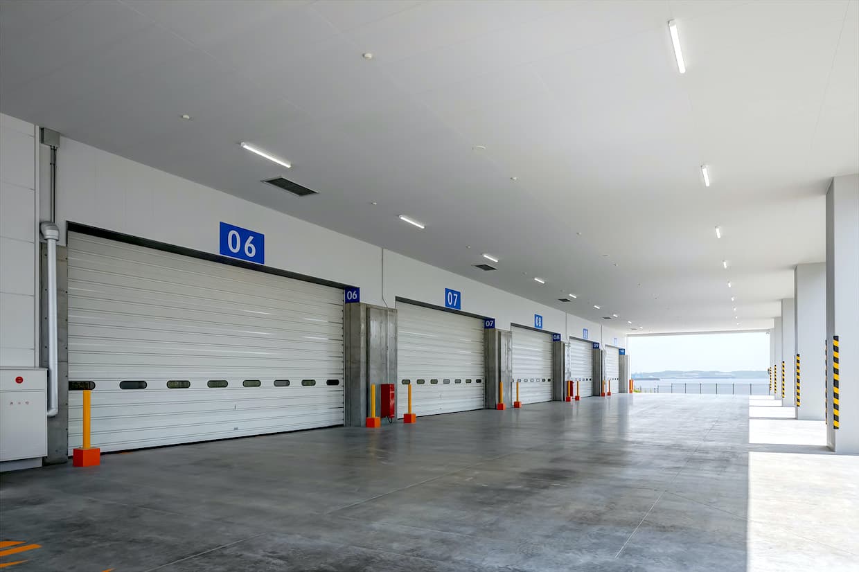 建物は2面L字バースを採用し、高回転の入出荷に対応。49台のトラック駐車場・待機場を確保、2-4階に作業用空調、4階にはカフェテリアを設けた。駅近立地の強みを生かし、事務所利用ニーズにも対応できるよう、事務所拡張スペースを設けている。