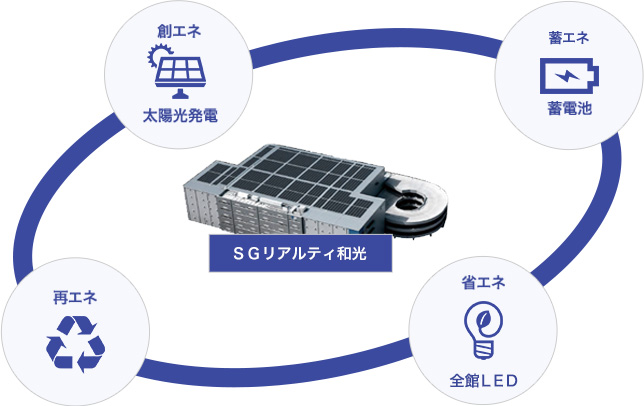 SGリアルティ和光は全館LED照明、太陽光発電システム、蓄電池を活用したゼロ・エネルギー設計による環境配慮型施設をコンセプトとして開発された物流施設だが、これまでは日照不足などの影響で発電量が不足した際に、化石燃料由来の電力を受給していたが、不足分を再生可能エネルギー由来の電力に切り替えることで「CO2排出ゼロ化」につなげた。