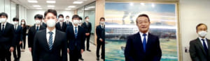 国内商船三井は7日、10月入社の新入社員17人が複数の会議室に分かれてモニターで映像と音声をつなぐスタイルの入社式を7日に開催した、と発表した。10月1日付で海上新卒採用10人、陸上キャリア採用3人、限定CD級4人が入社した。