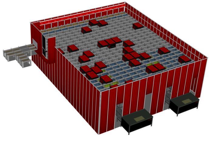 ▲ロボット28台、ビン1700個、ポート2か所の小規模オートストアのイメージ