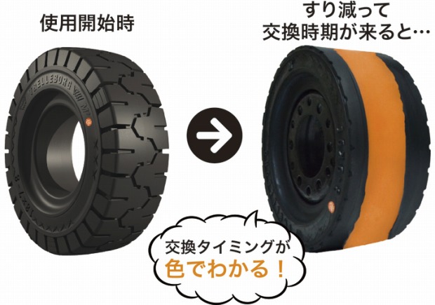 サービス・商品フォークリフト用ノーパンクタイヤ販売を手がけるフクナガエンジニアリング(大阪市城東区)は7日、「外国人労働者や高齢者などリフト管理に不慣れなスタッフでも適切に交換タイミングを把握できる」ことをセールスポイントとするフォークリフト用ノーパンクタイヤ「M2」の提供を開始する。