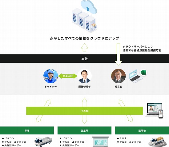 IT点呼は、ドライバーと運行管理者の間で行われるアルコールチェックや乗務前・中間・乗務後の点呼業務を、ネットワーク技術で遠隔地でも相手の顔を見ながら行うもので、現場業務の効率化の一環として注目を集めている。