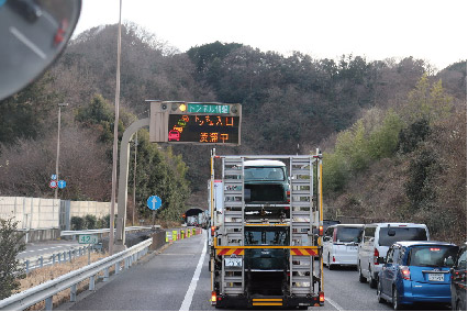 かなちゃんの視点でトラックに乗ると、「○○で事故渋滞3キロ15分」といった、どこでなんの原因による、何分程度で、何キロの渋滞かということを知ら せる電光掲示板の情報がしょっちゅう目に付くようになる。