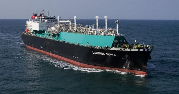 ▲新造LNG船「LAGENDA SURIA」(出所:川崎汽船)