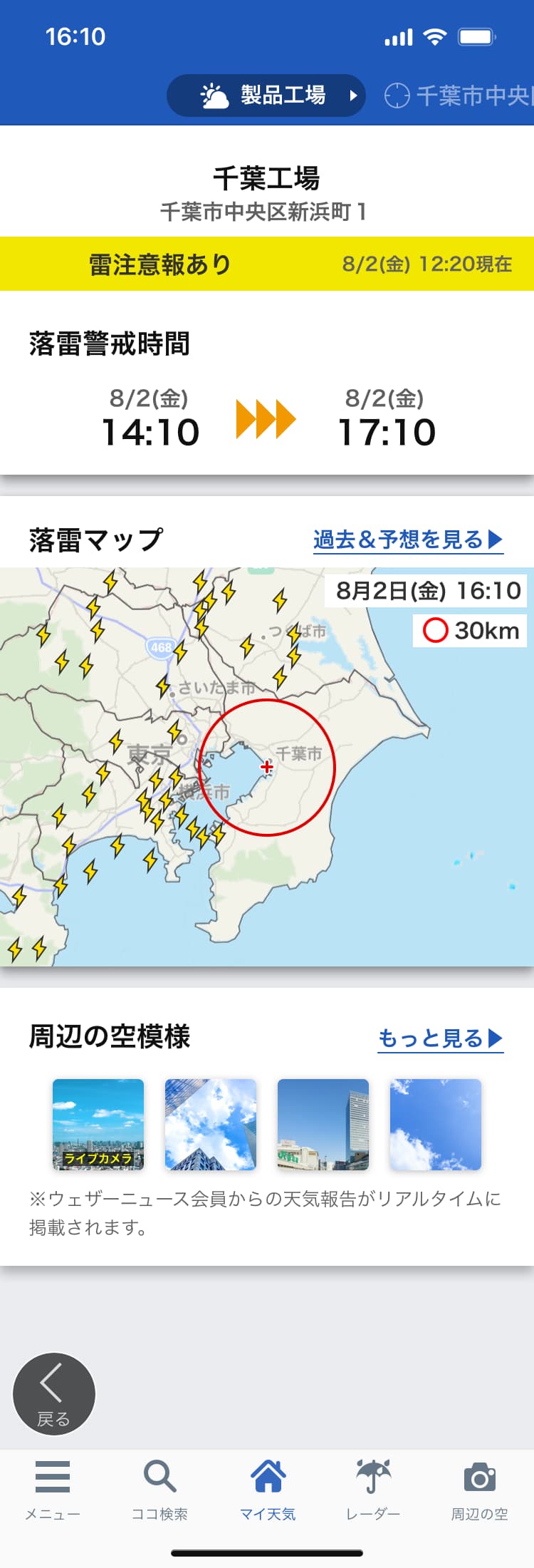 サービス・商品ウェザーニューズは28日、法人向け気象情報サービス「ウェザーニュース for Business」の提供を開始したと発表した。新サービスは、同社の天気アプリ「ウェザーニュース」アプリをビジネス用に拡張したもの。工場内での熱中症や落雷、大雨による交通規制など、倉庫や工場、運輸といった物流業界などで、施設の管理や屋外業務に役立つ天気情報をリアルタイムにチェックできる機能を搭載している。温暖化に伴う気象災害が各地で多発するなか、防災・BCP(事業継続計画)対策ツールなどとして今後も機能をアップデートしていく方針。