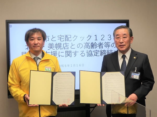フードシニアライフクリエイト(東京都港区)は17日、自社の高齢者専門宅配弁当サービス「宅配クック ワン・ツゥ・スリー」のフランチャイズ店が、北海道北見市との間で高齢者らの見守り支援に関する協定を結んだと発表した。