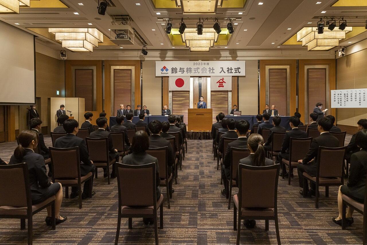鈴与が3日、新入社員36人を迎えて入社式を開催した。式典では入社への不安を軽減し、社員としての自覚を持ってもらおうと「会社・同期同士の相互理解を深める入社式」というコンセプトで実施された。