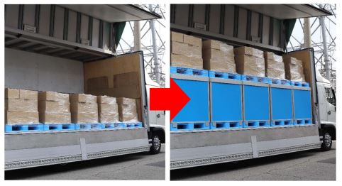 エーディエフは今後、ダンカーゴのリターナブル物流容器(RTI)としての活用も視野に入れている。ダンカーゴを各拠点ごとにレンタルし継続的に利用してもらうことで、空ボックスを回収するだけのトラック輸送を削減する。これにより、各拠点での作業効率や積載効率を向上させるだけでなく、使い捨て物流容器の破棄を減らし、CO2排出量を従来から半減させることにつながるとしている。