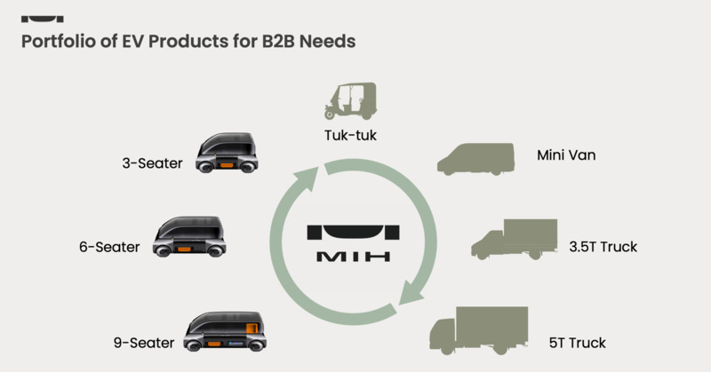 MIHコンソーシアムのCEO(最高経営責任者)JackCheng(ジャック・チェン)氏は、ライドヘイリング、カープーリング、カーシェアリング、配送、物流車両などのサービスを積極的に推進する姿勢を示した。また、タイや日本などの東南アジアで概念実証プロジェクトを開始する予定で、トゥクトゥク、ミニバン、3.5トン・トラック、5トン・トラックなどの商用車を含む新しい範囲の電気自動車を開発する意向を明らかにした。