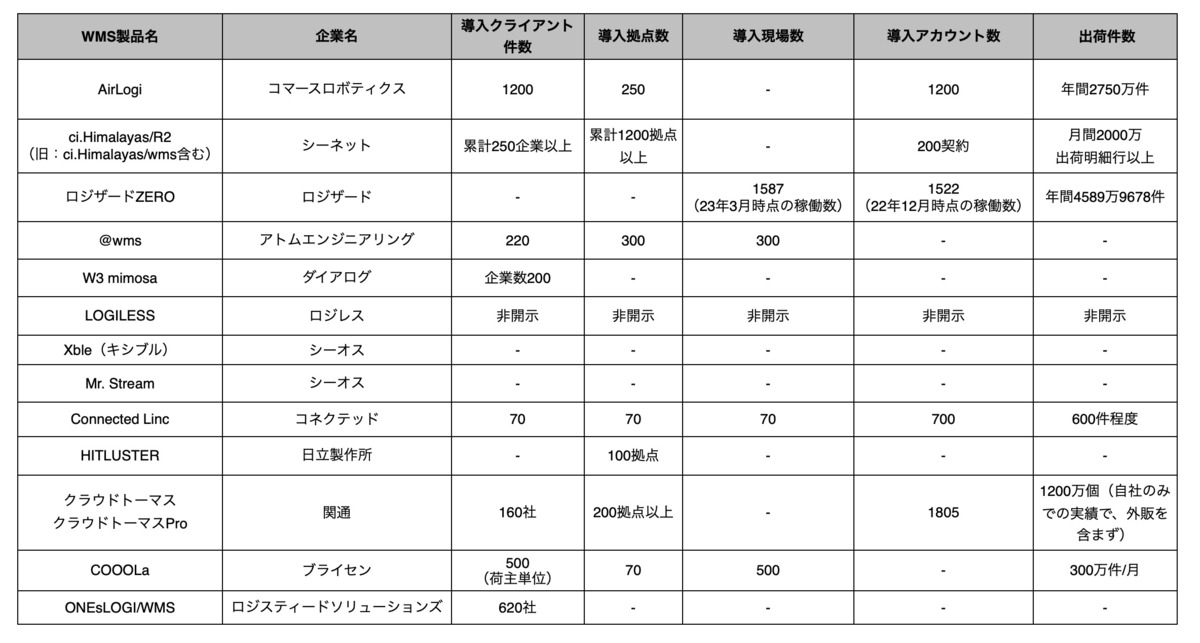 そのほかの顔ぶれは「ONEsLOGI(ワンスロジ)」(日立物流ソフトウェア)、「COOOLa(クーラ)」(ブライセン)、「W3 mimosa(ミモザ)」(ダイアログ)、「クラウドトーマス」(関通)がそれぞれ2.6%、「ロジクラ」(ロジクラ)、「倉庫革命」(ヤマトシステム開発)、「Xble(キシブル)」(シーオス)が2%で並んだ。