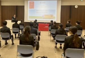内定式では、安藤社長が採用内定者に「キリングループロジスティクスの未来に自分たちが主役となり、活躍する姿を想像することは非常に大切だ。様々な視点から思い描いてほしい」とメッセージを送った。