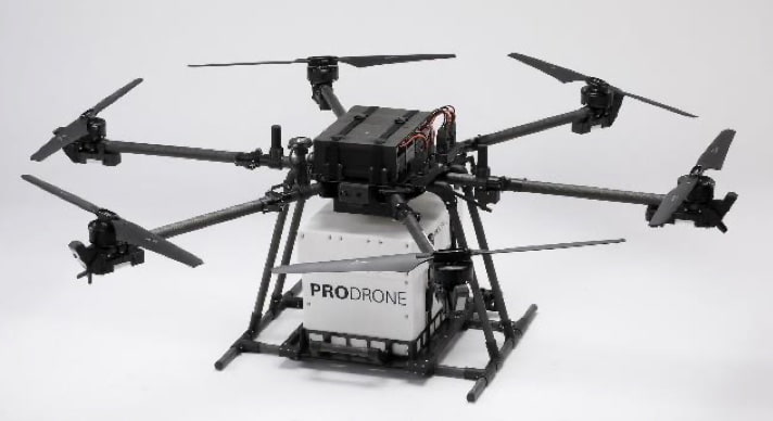 使用するドローンはプロドローン(名古屋市天白区)製の20キロ可搬の物流用ドローンで、最大飛行時間は28分。