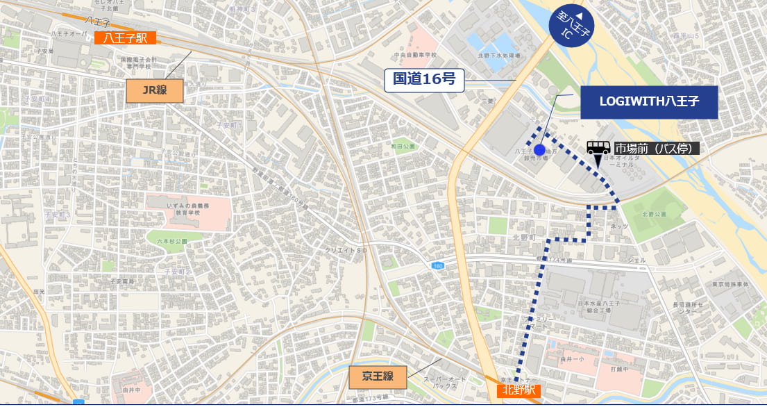 また、京王線・北野駅から徒歩15分、JR中央線「八王子」駅から京王電鉄バス「市場前」バス停下車で徒歩3分と、従業員の通勤にも便利な立地環境で、労働力確保の観点からも優位性がある施設だ。