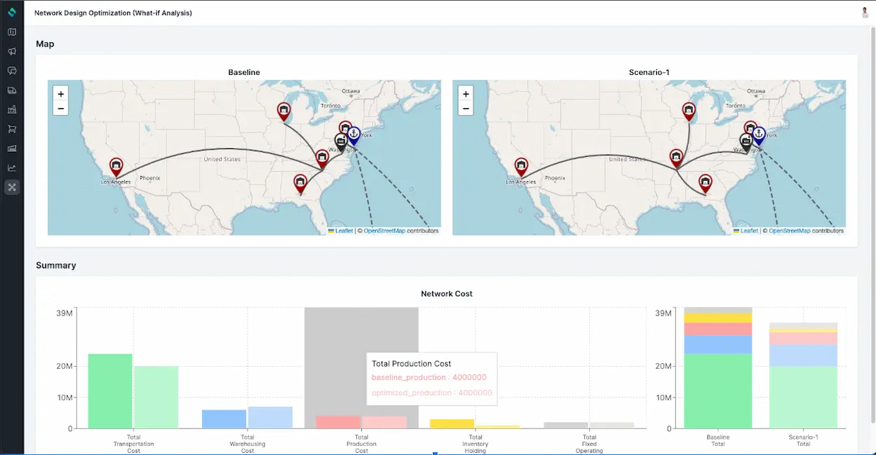 新サービスでは、物流センターの最適な立地や、コスト削減の可能性、最適な輸送モード、3PLを使用するメリット、予測を超えた需要があったときの増産拠点、天災や地政学的リスク発生時の代替輸送ルートなど、さまざまなサプライチェーン上の意思決定に寄与する。