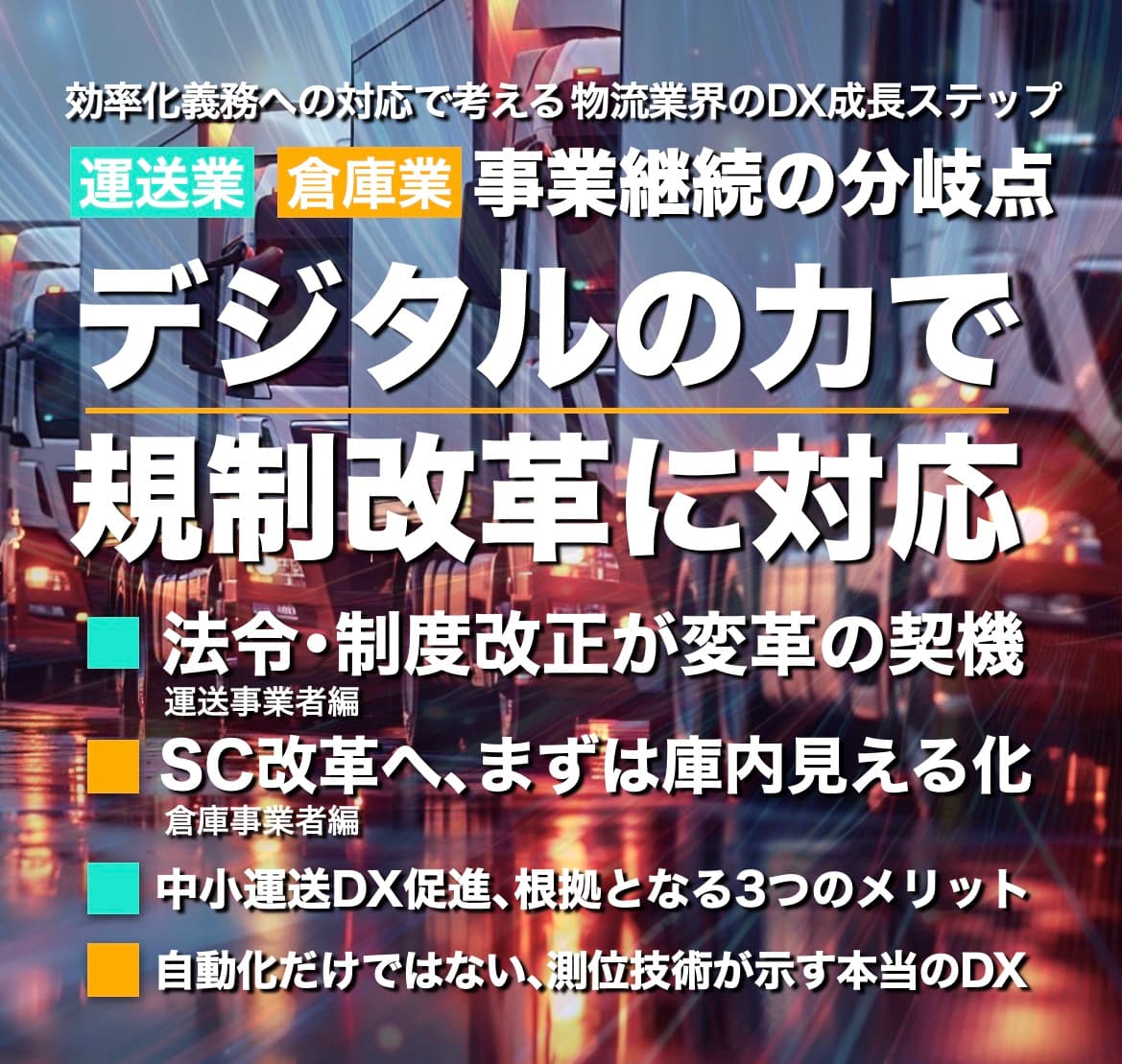 こうして見てみると、物流の業界の一員であり続けるには、好き嫌い、得手不得手を問わず、デジタル、IoT技術を活用した業務効率化は避けられない取り組みであることは明らかだ。もちろん、DXが法令への対応となるのは、あくまでも結果論。運送事業者であれば、車両費や燃料費、人件費などの原価コスト高騰、仕事や荷物量の減少、人手不足への対応として、倉庫事業でもEC(電子商取引)需要の増加への対応や省人化など、事業継続、事業成長のために効率化に取り組むことを必然とする企業も多いはずであり、将来へ向けた投資としてDXを検討する事業者と、検討できない事業者の違いは、現状の把握力と将来に向けたビジョンの有無だと言えるかもしれない。