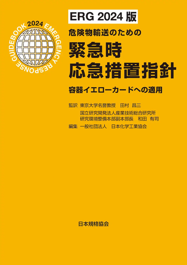 同書は、危険物輸送事故時の情報提供に利用される「イエローカード制度」を補完する「容器イエローカード制度」の適用のため、「容器イエローカード制度」に関する説明とともに、「2024 Emergency Response Guidebook(ERG 2024)」の邦訳を収録したもの。