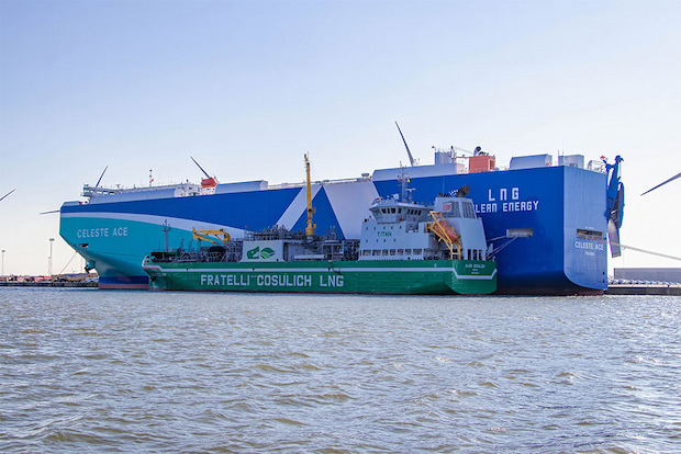 ロジスティクス商船三井は19日、LNG(液化天然ガス)燃料自動車船「CELESTE ACE」(セレステ・エース)が、16日にベルギーのゼーブルージュ港で、オランダのタイタン・サプライから500トンのバイオLNG燃料の供給を受けたと発表した。同船は邦船社が運航する外航船として初めてバイオLNG燃料を使用する。