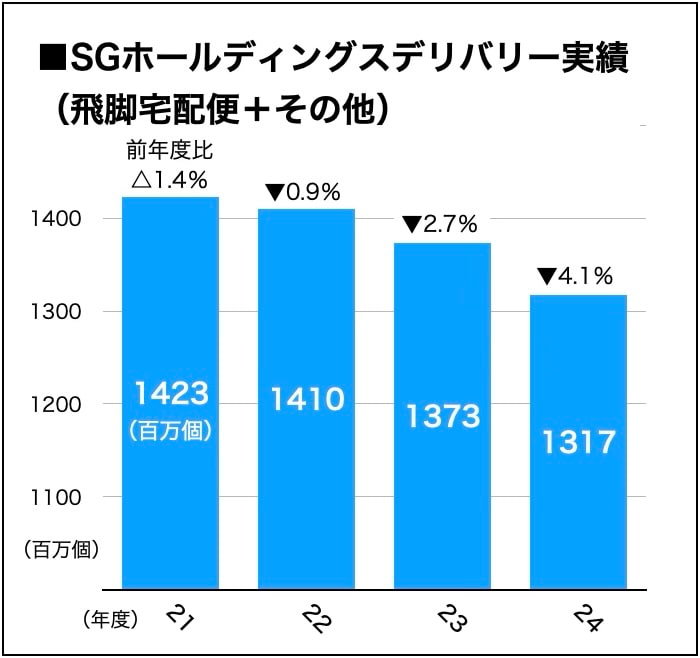 24年度の宅配市場を振り返ると、コロナ禍では旺盛だったEC需要の反動減や、物価高騰に伴う消費者の買い控えを背景に厳しい事業環境が続いた。実際、佐川の宅配便取扱個数は前年度比マイナスで着地した。