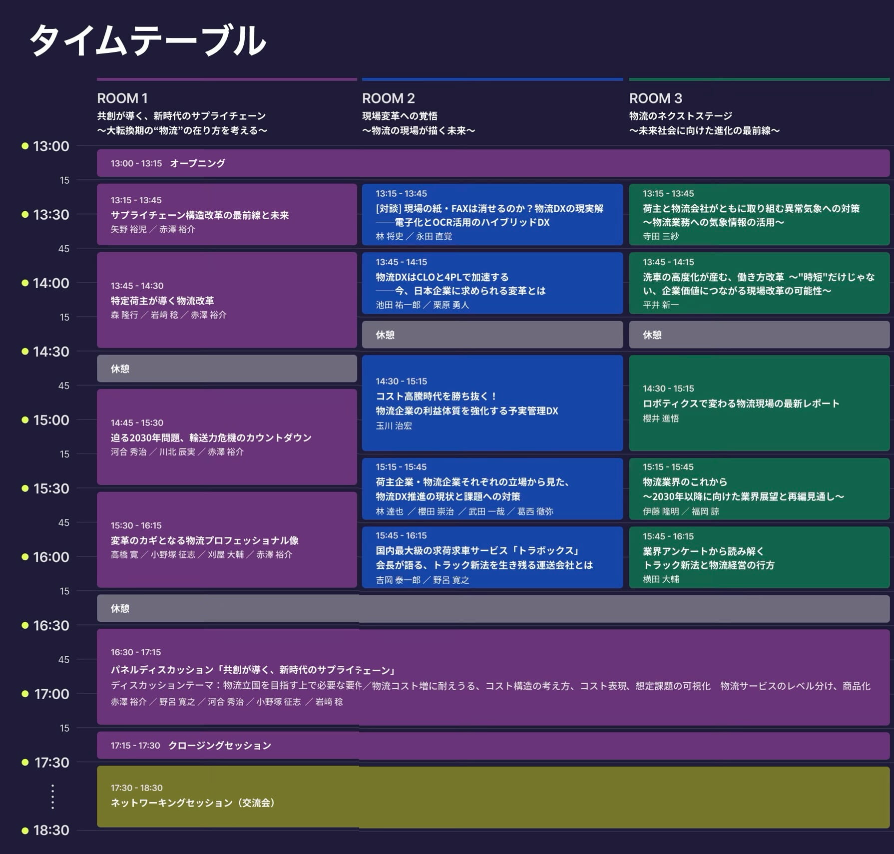 テーマは「共創が導く、新時代のサプライチェーン ~大転換期の“物流”を考える~」。3会場同時進行でセッションを展開し、制度改正やドライバー不足、輸送力危機、DXや新技術の活用など、喫緊の課題に正面から切り込む。初開催の昨年は1000人を超える申し込みがあり、参加者の9割以上が「また参加したい」と回答するなど高い評価を得た。ことしはさらに規模を拡大し、現場と経営の双方に役立つ実践的な知見を提供する。セッション後には、参加者同士での交流会も予定している。