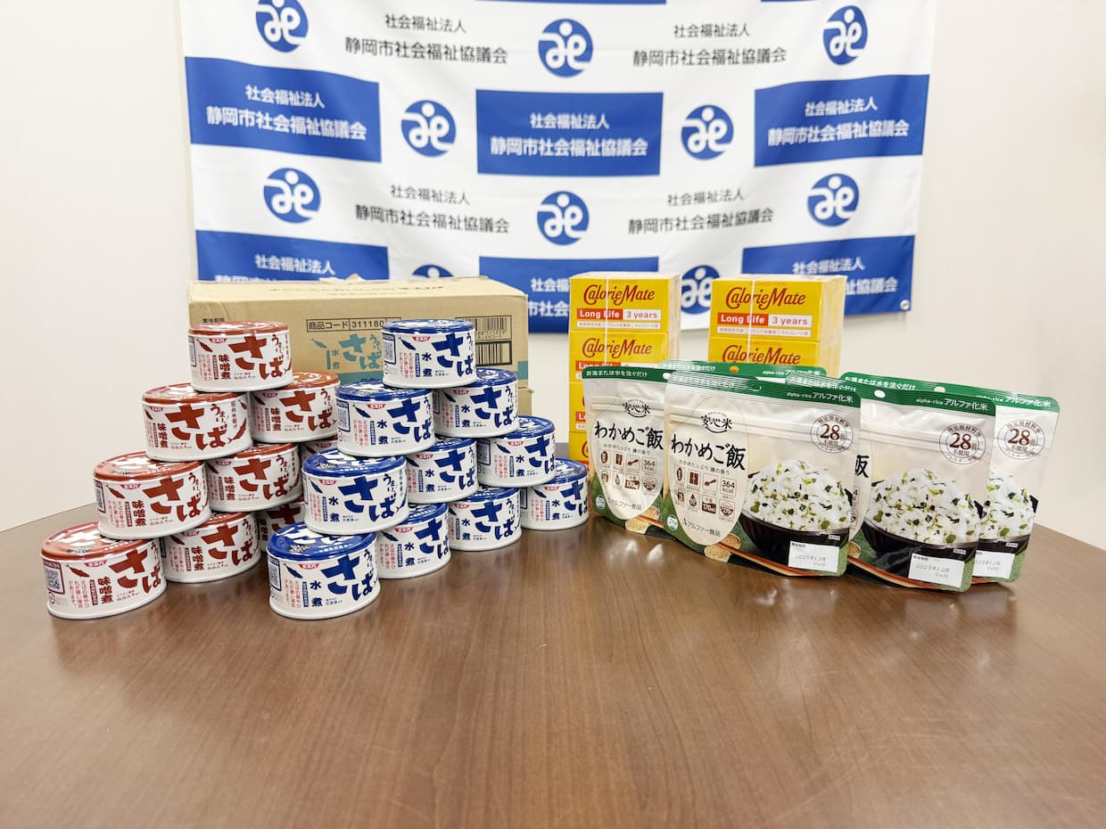 寄付したのは、栄養調整食品1380個、わかめご飯300袋、さば水煮缶240缶、さば味噌煮缶624缶の計4種。物価や光熱費の高騰により、生活支援が必要な世帯が増加しているとの報告を受け、支援の一助として提供した。