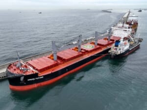 環境・CSR日本郵船は9月30日、グループ会社のNYKバルク・プロジェクトが神原汽船(広島県福山市)から定期傭船するメタノール二元燃料ばら積み船「Green Future」に、低炭素メタノールを補給したと発表した。
