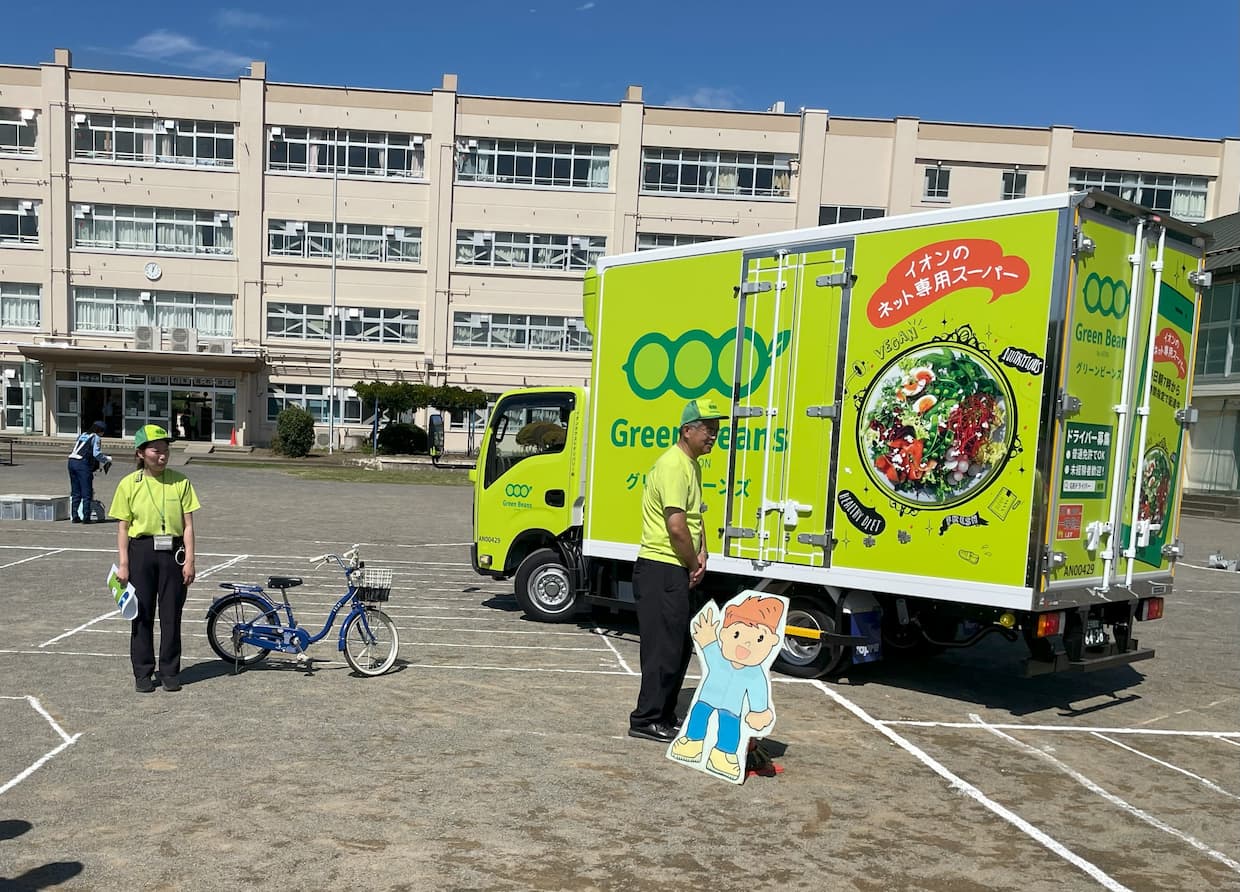 グリーンビーンズはイオンのネット専用スーパーで、同社はその配送機能を担う。10月1日から八王子エリアで配送を開始する予定で、今後も地域の交通安全活動に協力していくとしている。