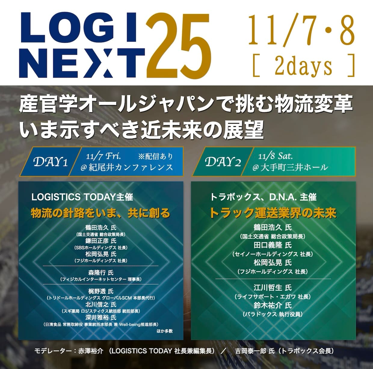 イベントLOGISTICS TODAYは、ハイブリッドイベント「LOGI NEXT 25」を11月7日・8日の2日間にわたり開催する。