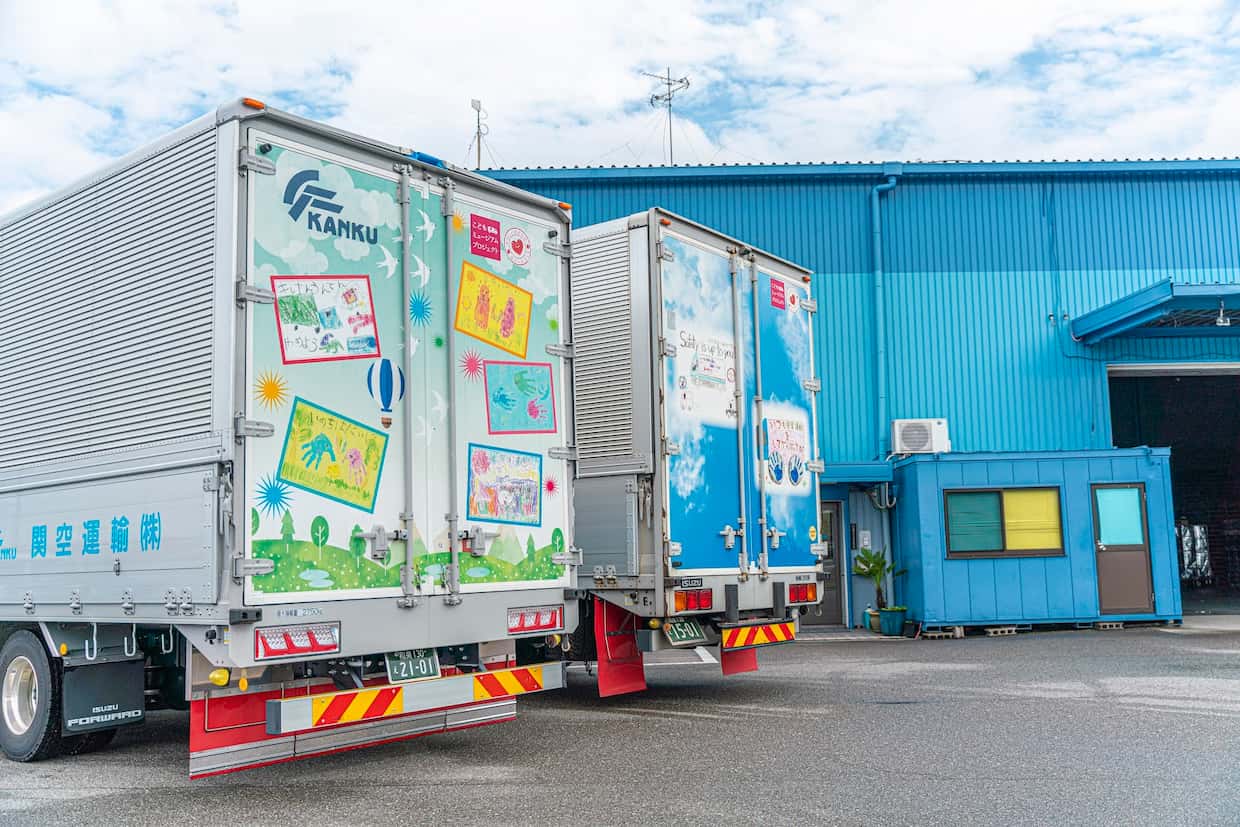 ▲トラックを子どもの絵で飾り、心にゆとりを持つことで交通事故を減らす取り組み「こどもミュージアム」に参加した同社トラック